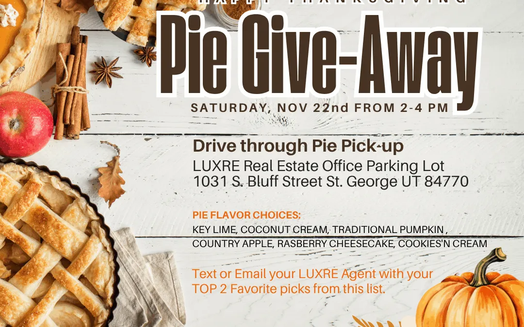 This Thanksgiving season, LUXRE Real Estate Group is grateful for the incredible clients, friends, and neighbors who make our community so special. As a token of our appreciation, we’re inviting you to our annual Thanksgiving Pie Give-Away!