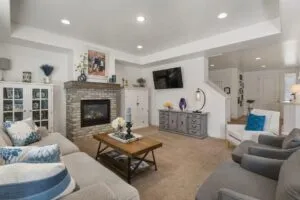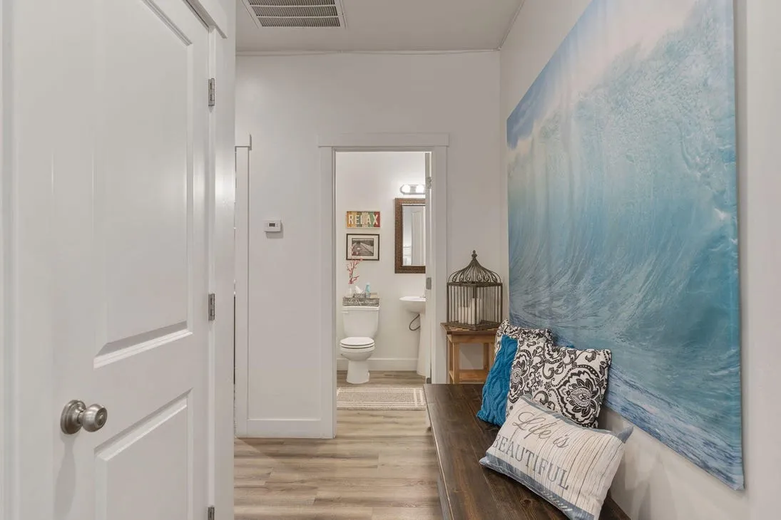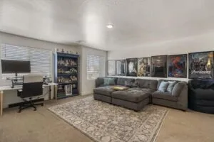 Upstairs, you’ll find a second family/game room and two separate bedroom wings with a total of four bedrooms and two full bathrooms.