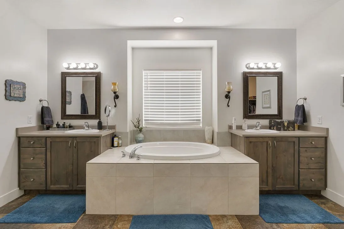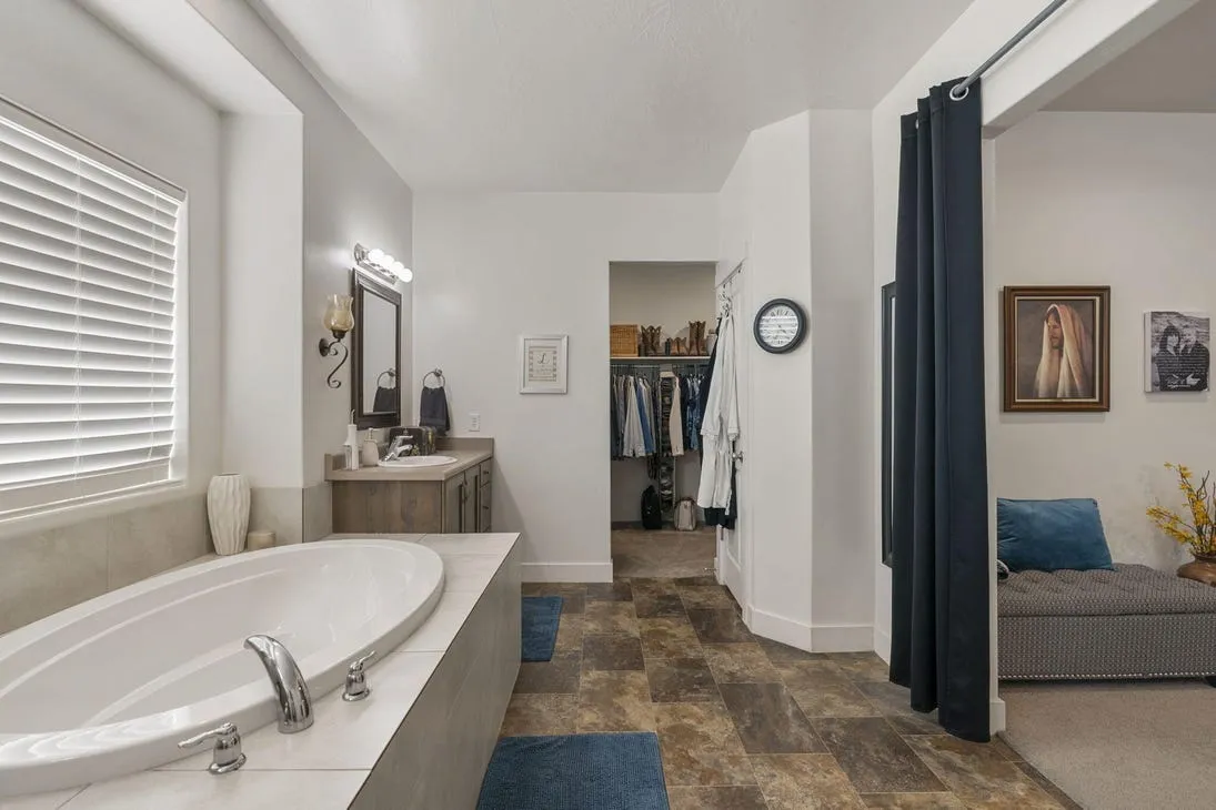 The main-level master suite boasts a walk-in closet and a luxurious master bath with a jetted tub, separate walk-in shower, and dual vanity. The main floor also includes a convenient half bath for guests and a laundry room with built-in cabinets and a sink.